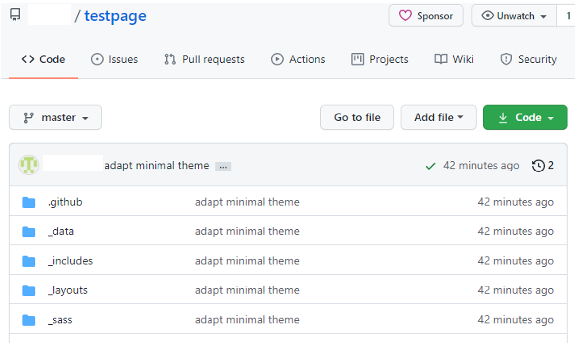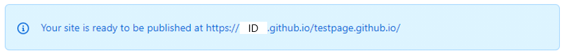 대신 Repository name에 ID.github.io 형식 대신 그냥 문자열("testpage")만 입력하면 아래와 같은 주소로 생성된다.